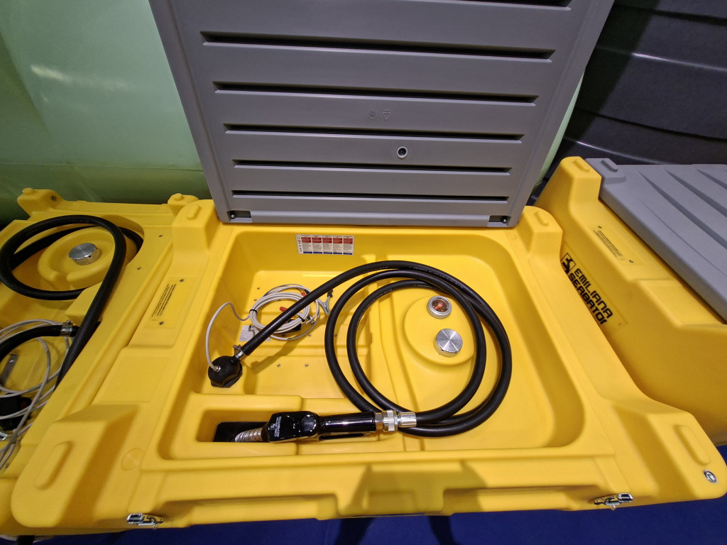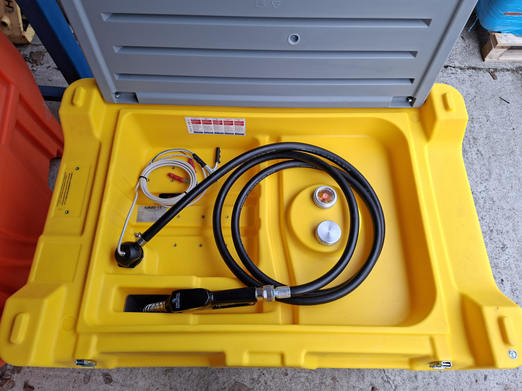 CARRYTANK 330 l PICKUP l go. tartály, 12V 15 l/perc szivattyú telj, szintjelző, 6 m elektromos kábel, 4 m nyomótömlő, automata pisztoly.