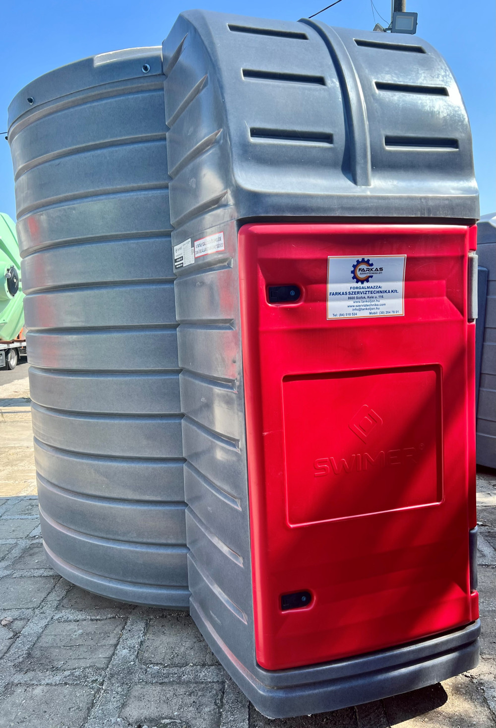 Műanyag dupla falú gázolajtartály két ponton zárható kimérőszekrénnyel. A tartályok rotációs eljárással kerülnek gyártásra, mely biztosítja az egyenletes öntést (nincs hegesztés, illesztés) és a külső tényezőkkel szembeni nagy ellenállást. UV-állóak, nem fakulnak, nem korrodálnak, magas kémiai és mechanikai ellenálló képességgel rendelkeznek.